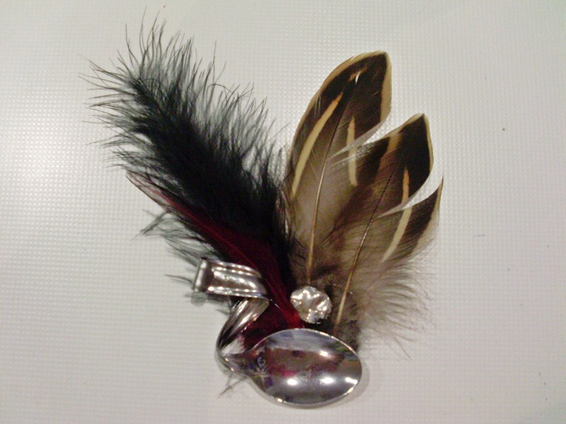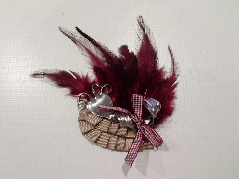 Estos preciosos broches son elaborados a mano, confeccionados por tenedores torcidos, perlas, plumas, cola de raton.